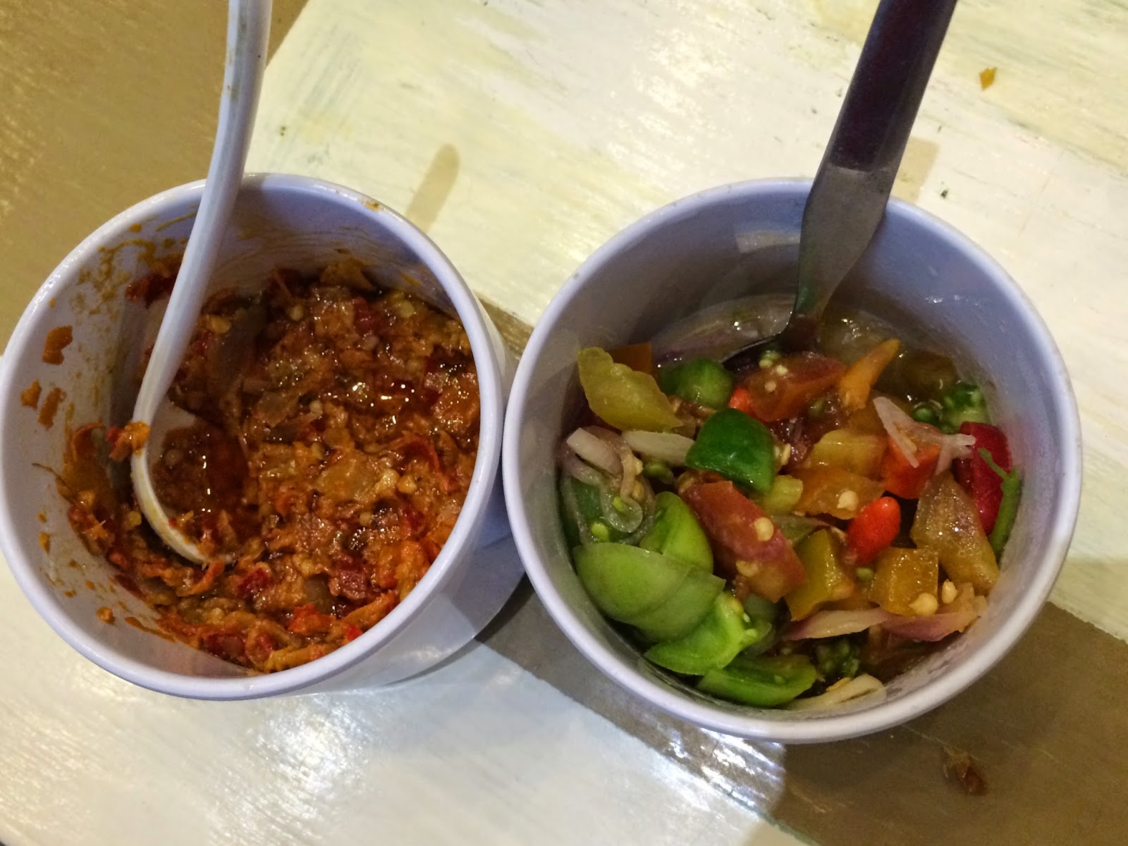segera menyantapnya dengan cocolan sambal di meja. Dimeja tersedia 2 jenis